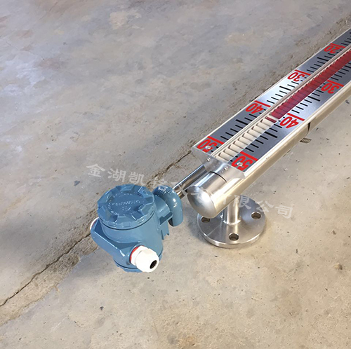 在浮子液位計上安裝變送器,通過浮子上下移動,經(jīng)磁耦合作用使導桿內測量元件依次動作,獲得電阻信號變化,轉換成0~10mA或4~20mA的標準信號輸出,與顯示儀表或計算機連接,達到遠傳目的。