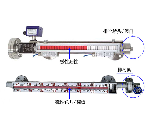 根據(jù)浮力原理,浮子在測量管內(nèi)隨液位的升降而上、下移動,浮子內(nèi)的永久磁鋼通過耦合作用,驅(qū)動紅、白色翻柱翻轉(zhuǎn)180°,液位上升時翻柱由白色轉(zhuǎn)為紅色,下降時由紅色轉(zhuǎn)為白色,從而實現(xiàn)液位指示。