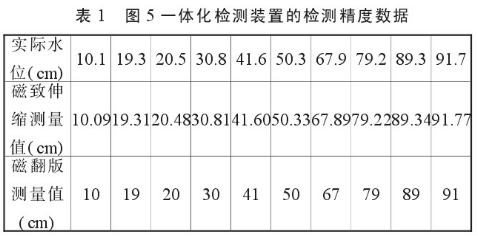 我們把圖5所示的一體化檢測(cè)裝置進(jìn)行了水位檢測(cè)實(shí)驗(yàn),其檢測(cè)結(jié)果與實(shí)際水位值見表1。
