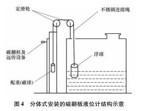 ①通過計(jì)算浮力和配重,在槽體頂部合適位置安裝定滑輪,在槽外合適位子安裝磁翻板傳感裝置;