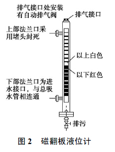 由于在石灰液位計(jì)的進(jìn)水接口法蘭處安裝有閥門(mén), 在平時(shí)不需要水泵水輪機(jī)排水檢修時(shí), 該閥門(mén)處于關(guān)閉狀態(tài), 必要時(shí)可以通過(guò)裝置底部的排污閥門(mén)把液位計(jì)主導(dǎo)管內(nèi)的水排空。