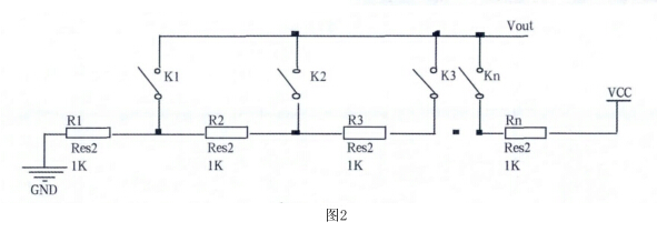 傳感器部分由串聯(lián)的電阻構(gòu)成,電阻一端接電源。另一點(diǎn)接地,每個電阻分得的電壓是