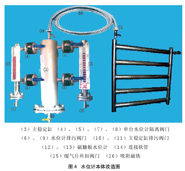 結(jié)介加熱爐水位計(jì)實(shí)際運(yùn)行研究,通過(guò)安裝磁鐵、安裝隔離控制閥門、擴(kuò)大穩(wěn)定缸容積、加裝雙水位、連接沖洗排污管線等一系列改造,將加熱爐耐腐蝕浮球液位計(jì)逐步改進(jìn),實(shí)現(xiàn)設(shè)備平穩(wěn)運(yùn)行。