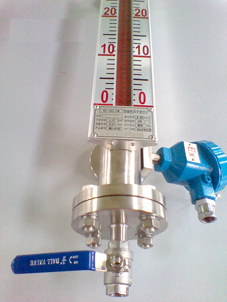 在浮子液位計(jì)上安裝變送器,通過浮子上下移動(dòng),經(jīng)磁耦合作用使導(dǎo)桿內(nèi)測(cè)量元件依次動(dòng)作,獲得電阻信號(hào)變化,轉(zhuǎn)換成0~10mA或4~20mA的標(biāo)準(zhǔn)信號(hào)輸出,與顯示儀表或計(jì)算機(jī)連接,達(dá)到遠(yuǎn)傳目的。
