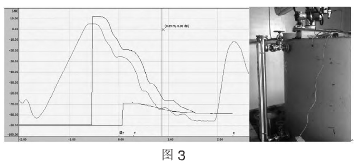 圖3為安裝在濃硫酸槽(高度1.2m)上的雷達液位計的回波包絡線圖。由于液位計距離罐壁太近而且儲槽本身較小,導致液位計報警:E641失波。