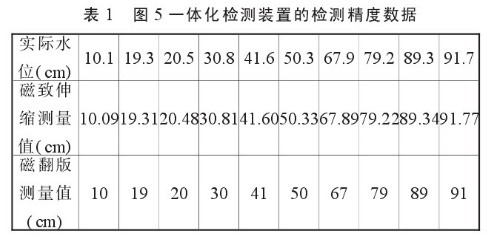 我們把圖5所示的一體化檢測(cè)裝置進(jìn)行了水位檢測(cè)實(shí)驗(yàn),其檢測(cè)結(jié)果與實(shí)際水位值見(jiàn)表1。