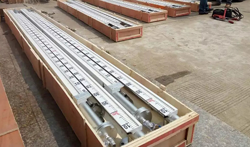 5、因運(yùn)輸過(guò)程中為了不使浮球組件損壞,故出廠前將浮球組件取出液位計(jì)主體管外,待液位計(jì)安裝完畢后,打開底部排污法蘭,再將浮球組件重新裝入主體管內(nèi),注意浮球組件重的一頭朝上,不能倒裝。如果在出廠時(shí)已經(jīng)將浮球組件安裝在主體管內(nèi),為保證運(yùn)輸過(guò)程中不使浮球組件損壞,我們用軟卡將浮球組件固定在主體管內(nèi),安裝時(shí)只要將軟卡抽出即可。