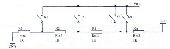 傳感器部分由串聯(lián)的電阻構(gòu)成,電阻一端接電源。另一點(diǎn)接地,每個(gè)電阻分得的電壓是