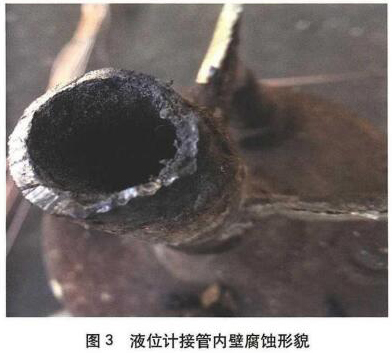 分離罐液位計(jì)接管先于罐體腐蝕泄漏失效是由于管壁較薄加之外表面防腐保溫不完整導(dǎo)致雨水侵人常年腐蝕所致。對(duì)此應(yīng)引起設(shè)計(jì)、制造、使用及檢驗(yàn)等相關(guān)各方為戒。