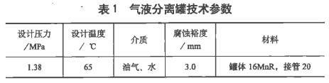 某煉化裝置1臺立式氣液分離罐(規(guī)格DN2400X20,以下簡稱分離罐),技術(shù)參數(shù)見表1。在今年12月運行中液位計接管(425x3mm)的外伸部位發(fā)生泄漏,進(jìn)行停工搶修。