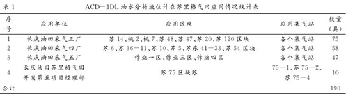 在試驗(yàn)成功的基礎(chǔ)上,蘇里格氣田對 ACD-1DL 油水分析液位計(jì)進(jìn)行了全面推廣,截止到 2014年 11 月底,共在 87 座集氣站應(yīng)用 190 臺,各單位應(yīng)用情況統(tǒng)計(jì)見表 1 。