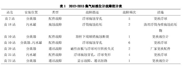 通過表1可以總結(jié)集氣站翻柱式浮子液位計主要存在以下幾種故障: