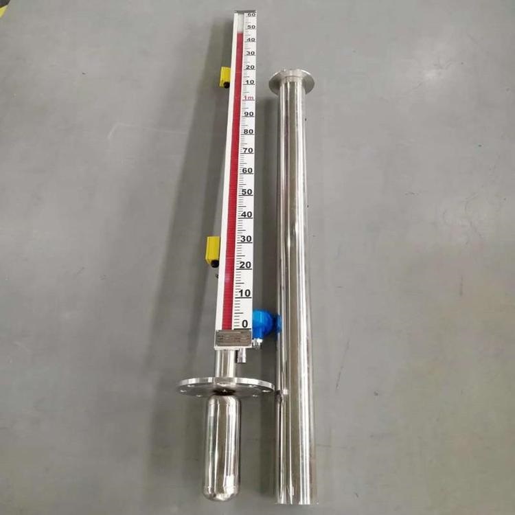 原理:根據(jù)浮力原理和磁性耦合原理而制成的,當(dāng)被測容器內(nèi)的液位上下變化時帶動浮球,并通過與之相連的連桿上端的永久磁鋼上下移動,經(jīng)磁性藕合而使顯示器中的翻柱翻轉(zhuǎn)。當(dāng)液位上升,翻柱由白色轉(zhuǎn)為紅色,當(dāng)液位下降時翻柱由紅色轉(zhuǎn)為白色,紅白界位處就為容器內(nèi)介質(zhì)液位的實際高度,從而實現(xiàn)液位自動跟蹤顯示。