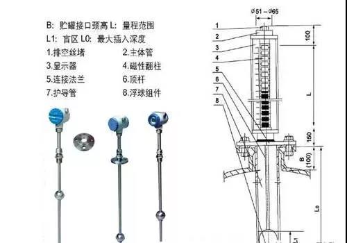 浮球中的磁體和傳感器(磁簧開關(guān))作用,使串聯(lián)入電路的元件(如定值電阻)的數(shù)量發(fā)生變化,進而使儀表電路系統(tǒng)的電學(xué)量發(fā)生改變。也就是使磁性浮子位置的變化引起電學(xué)量的變化。通過檢測電學(xué)量的變化來反映容器內(nèi)液位的情況。