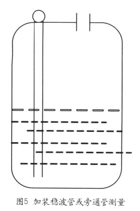 雷達(dá)液位計(jì)是按“俯視式”時(shí)間行程測(cè)量原理進(jìn)行工作的,用于測(cè)量探頭安裝處到液位表面的間距。其結(jié)構(gòu)非常簡(jiǎn)單,主要由儀表外殼、過(guò)程連接和短桿天線組成。天線起始處有一將脈沖延遲發(fā)射100mm或250mm的屏蔽管,以確保測(cè)量不受安裝接管處冷凝或粘附的影響。其測(cè)試原理見圖1。