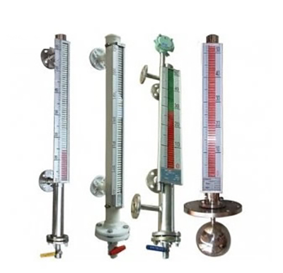液位計根據(jù)浮力原理,浮子在測量管內隨液位的升降而上下移動,浮子內的永久磁鋼通過磁耦合作用,驅動紅、白色翻柱翻轉180’液位上升時,翻柱由白色轉為紅色,下降時,翻柱由紅色轉為白色,從而實現(xiàn)液位的指示。