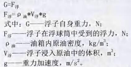 通過上式可以看出,浮球桶進(jìn)入液體體積約為1/2左右,說明其對(duì)于密度為0.92g/c3的中到重質(zhì)油測(cè)量液位非常合適,避免了人工測(cè)量產(chǎn)生的人為誤差,更對(duì)于測(cè)量人員靠近罐口可能產(chǎn)生的危險(xiǎn)進(jìn)行了有效的規(guī)避。