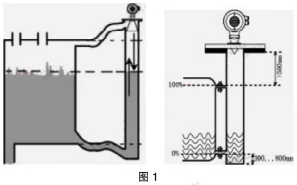 如圖1所示,導(dǎo)波雷達(dá)液位計(jì)是依據(jù)時(shí)域反射原理(TDR)為基礎(chǔ)的雷達(dá)液位計(jì),雷達(dá)液位計(jì)的電磁脈沖以光速沿鋼纜或探棒傳播,當(dāng)遇到被測(cè)介質(zhì)表面時(shí),雷達(dá)液位計(jì)的部分脈沖被反射形成回波并沿相同路徑返回到脈沖發(fā)射裝置,發(fā)射裝置與被測(cè)介質(zhì)表面的距離同脈沖在其間的傳播時(shí)間成正比,經(jīng)計(jì)算得出液位高度。某電廠經(jīng)過(guò)技術(shù)改造采用波導(dǎo)雷達(dá)后,液氨液位波箱現(xiàn)象消失,儲(chǔ)罐運(yùn)行良好。